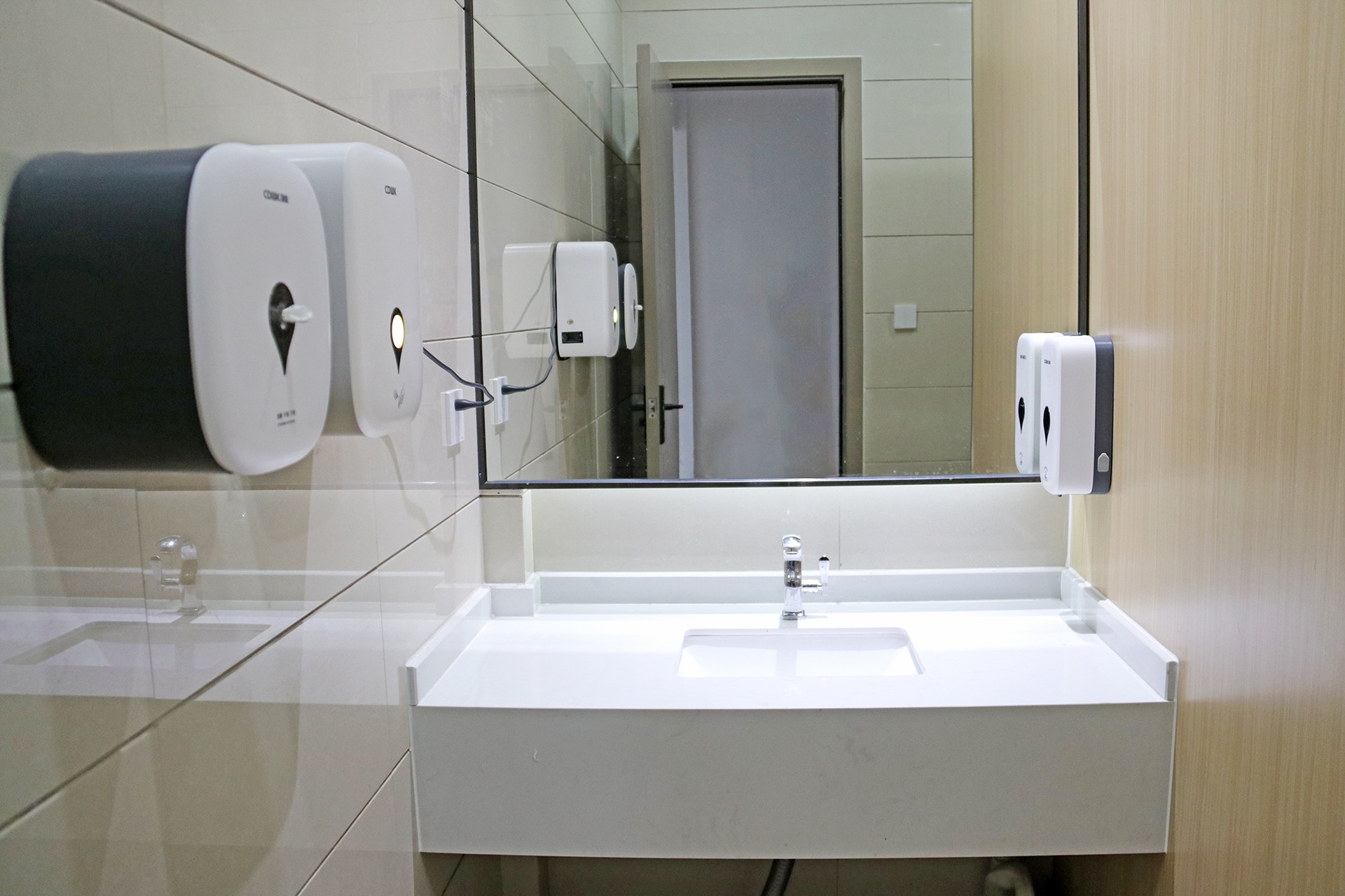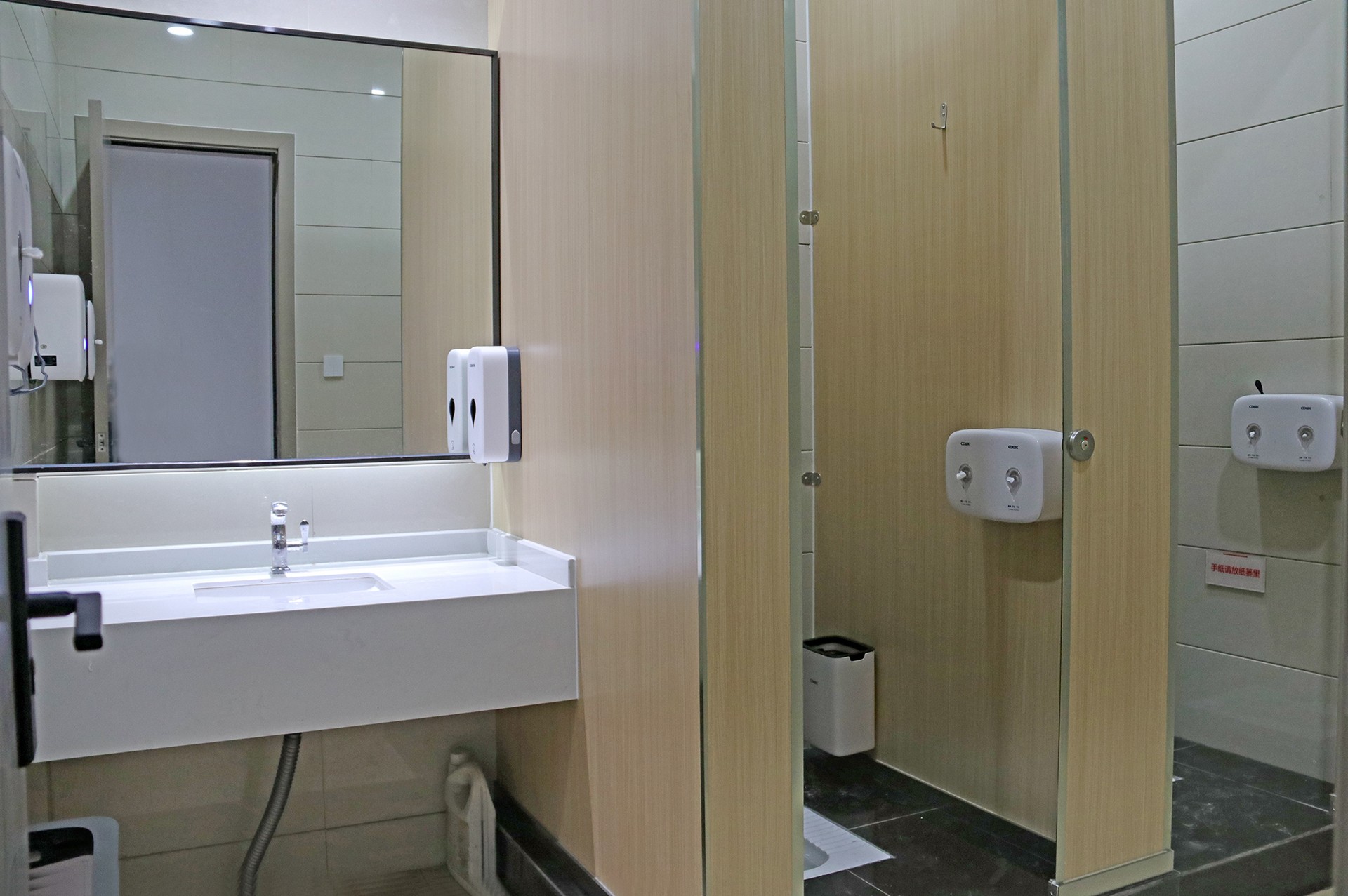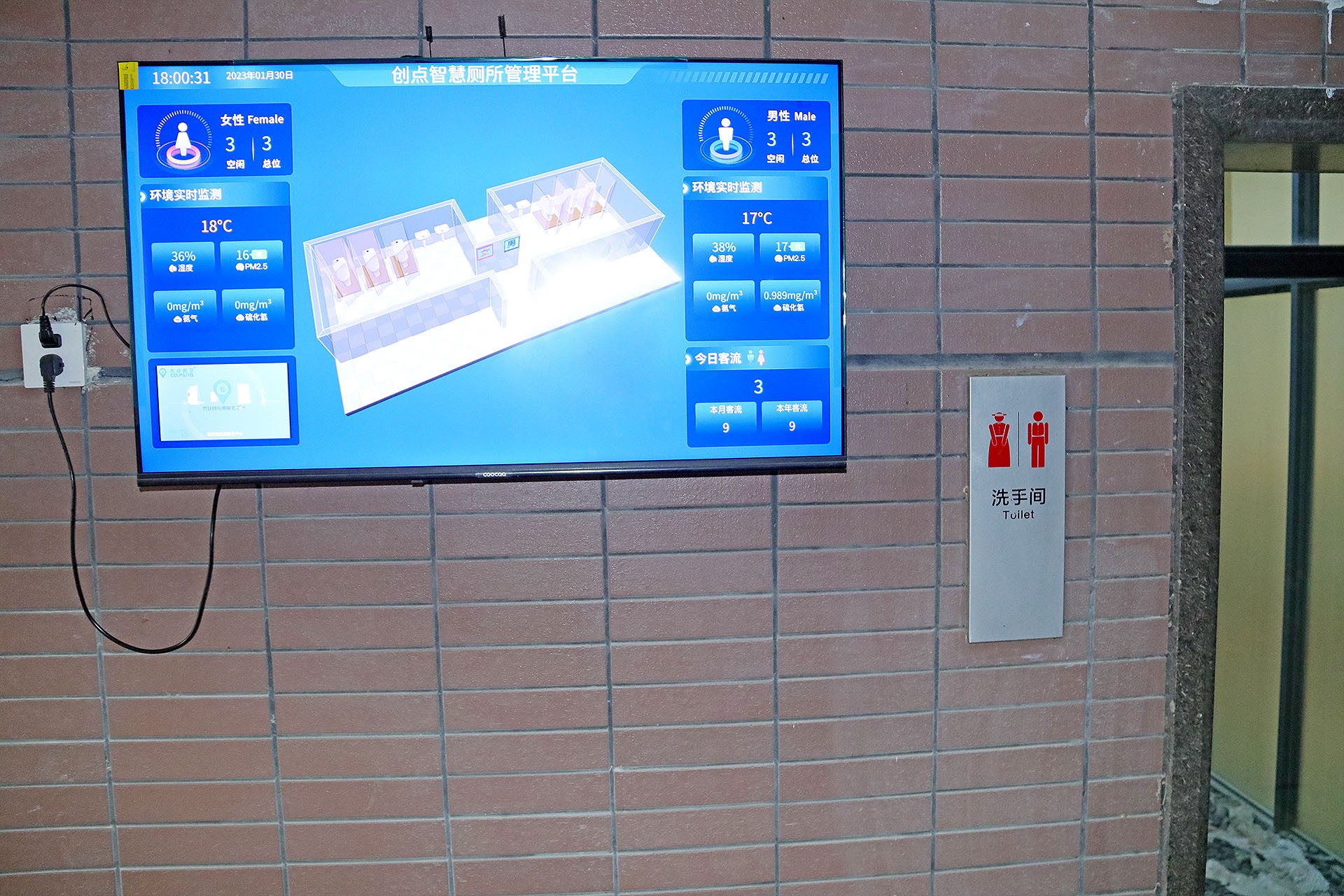 人們通過(guò)屏幕可以看到當(dāng)日的人流量、當(dāng)前的使用情況外,還能實(shí)時(shí)監(jiān)控廁所內(nèi)氨氣和硫化氫等有臭/毒氣體與環(huán)境濕度與溫度,自動(dòng)控制空調(diào)、排風(fēng)系統(tǒng)結(jié)合自動(dòng)噴香機(jī)調(diào)整空氣環(huán)境,營(yíng)造干凈舒適的廁所環(huán)境。