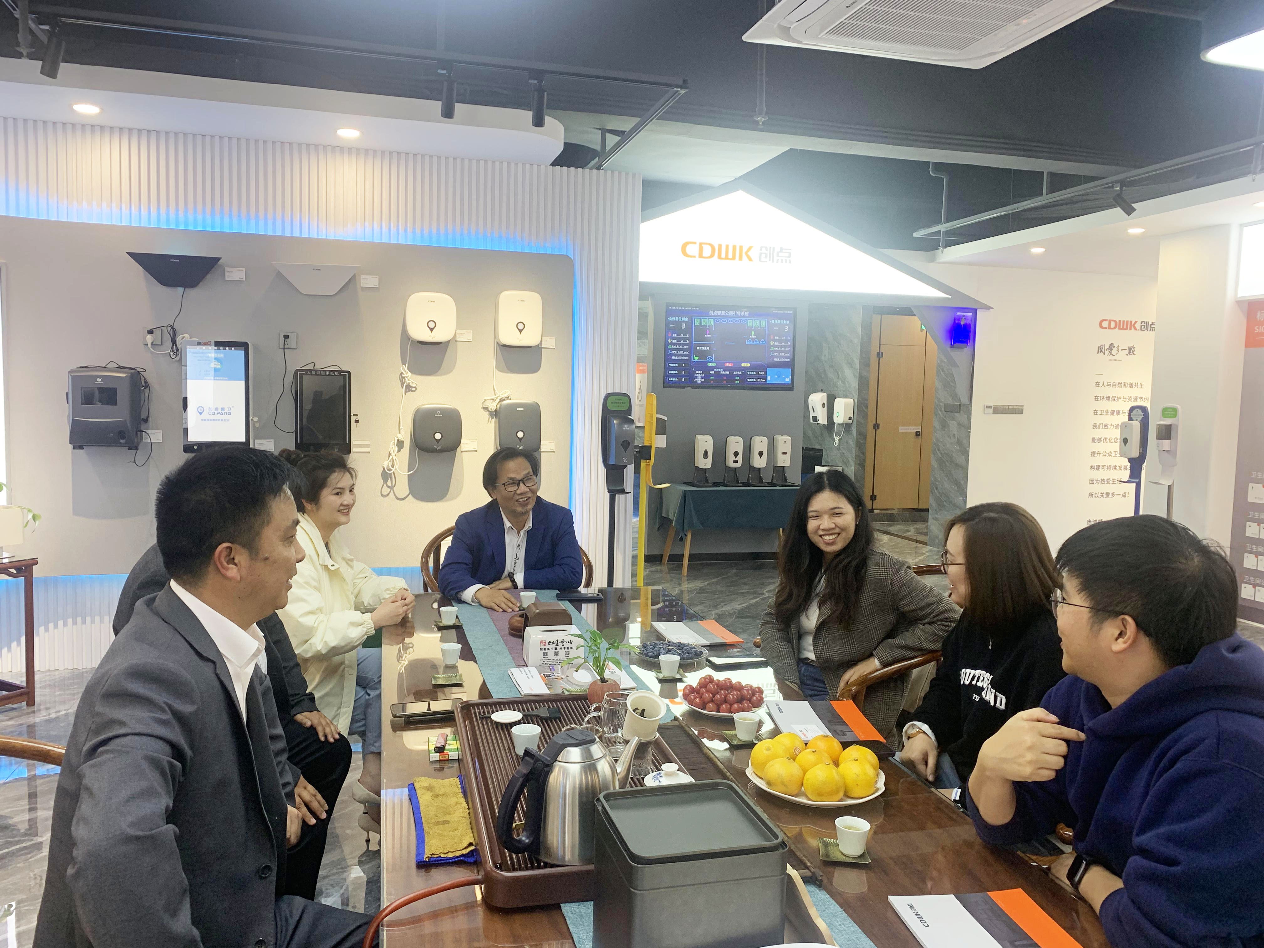 2023年2月16日下午,亞太森博(廣東)紙業有限公司產品經理李經理、劉經理與采購歐經理領導蒞臨創點參觀指導!公司總經理龐總、副總經理楊總、銷售總監王總、李經理與嘉賓們進行座談交流,深入洽談對接項目,高效務實推動合作成果盡快落地,并且參觀了企業產品展廳、生產車間,深入了解創點發展、產業布局、企業文化。